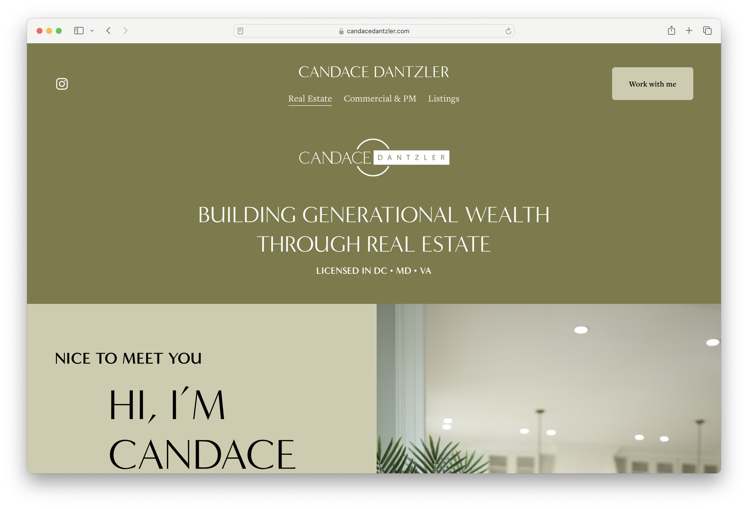 Candace is a realtor based in the Greater Washington area, helping clients buy and sell commercial and residential real estate in DC, Maryland and Virginia (DMV). She recently decided to begin building her own real estate team. Her goal for this project was to relaunch her brand with a new website and to clearly communicate her wide range of real estate services.